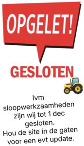 We willen het veilig houden voor onze kleine bezoekertjes dus tijdens de sloop zijn wij gesloten!!